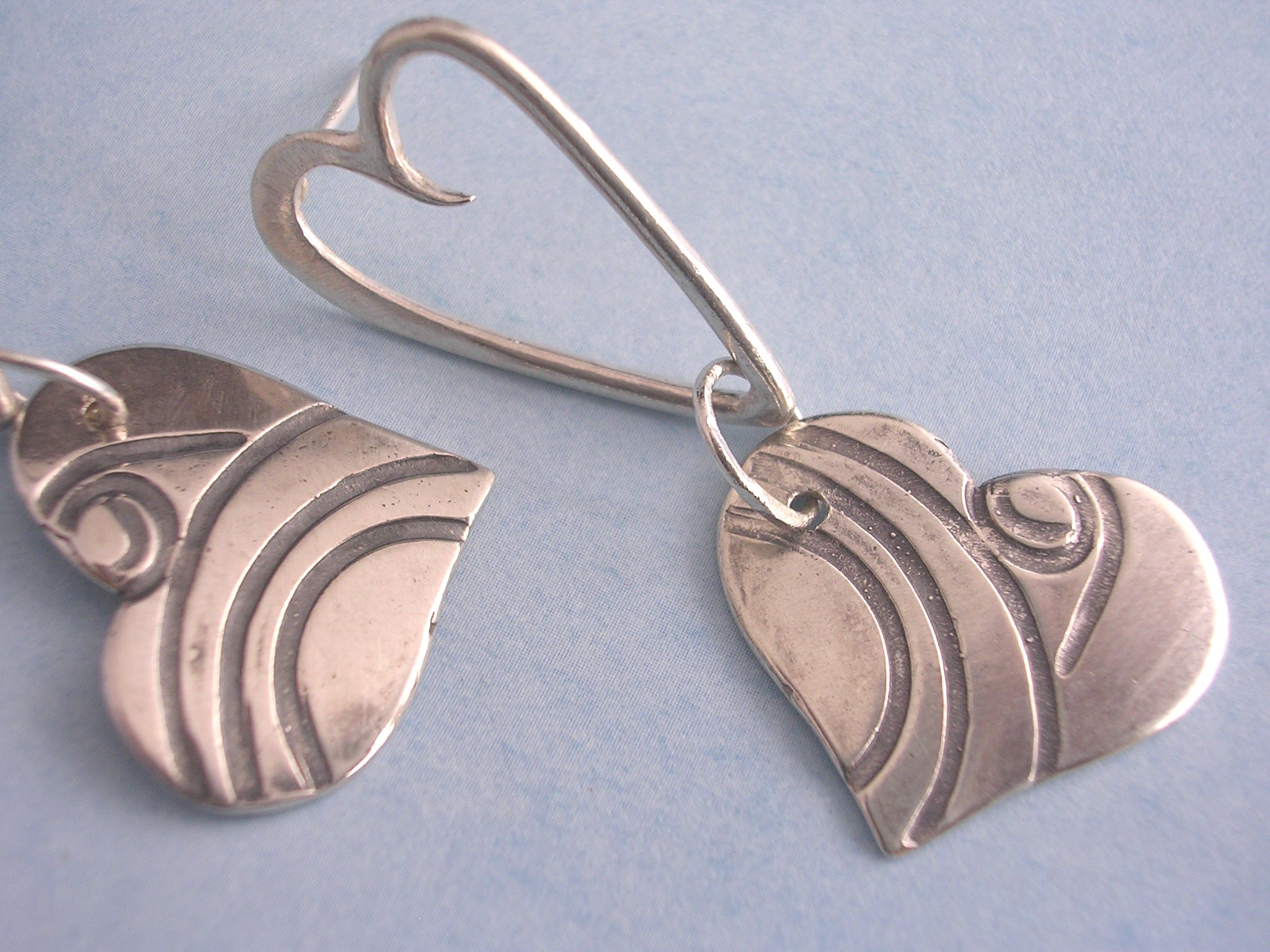 | Fun. Kinetic. Textured heart dangles. Sterling silver. $55 |