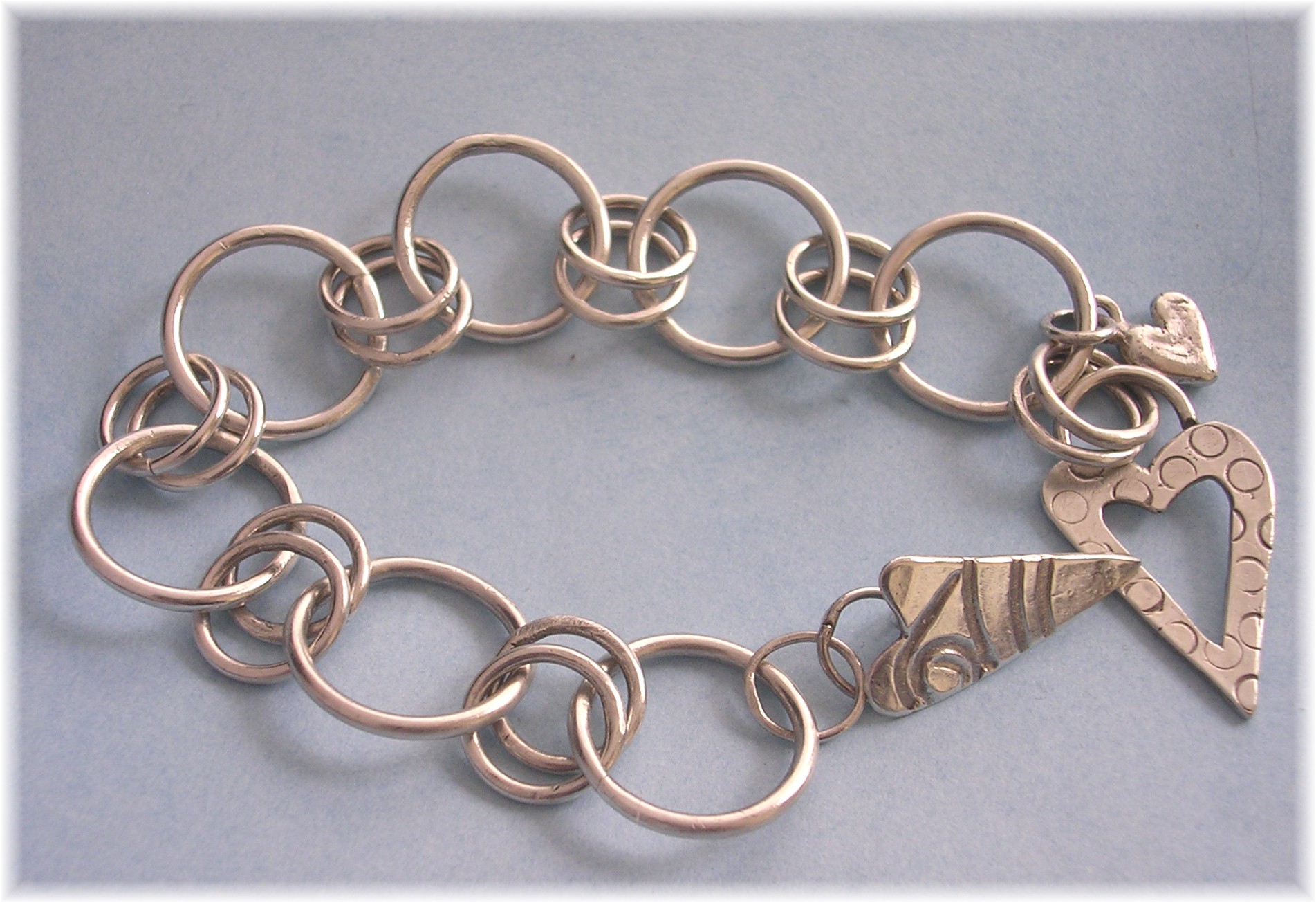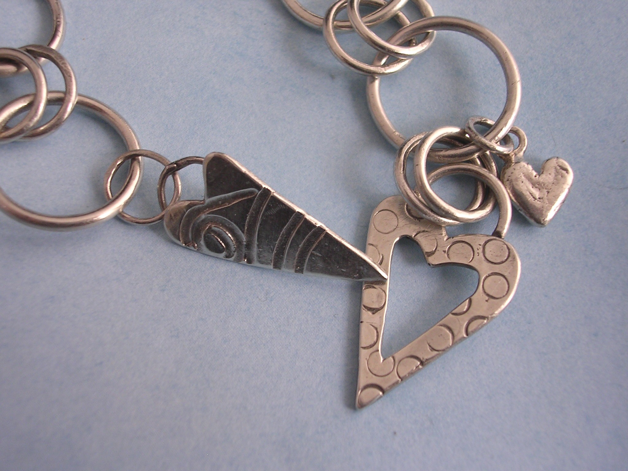 | Chunky sterling silver chain link bracelet with heart toggle closure and droplet heart charm. $105 |