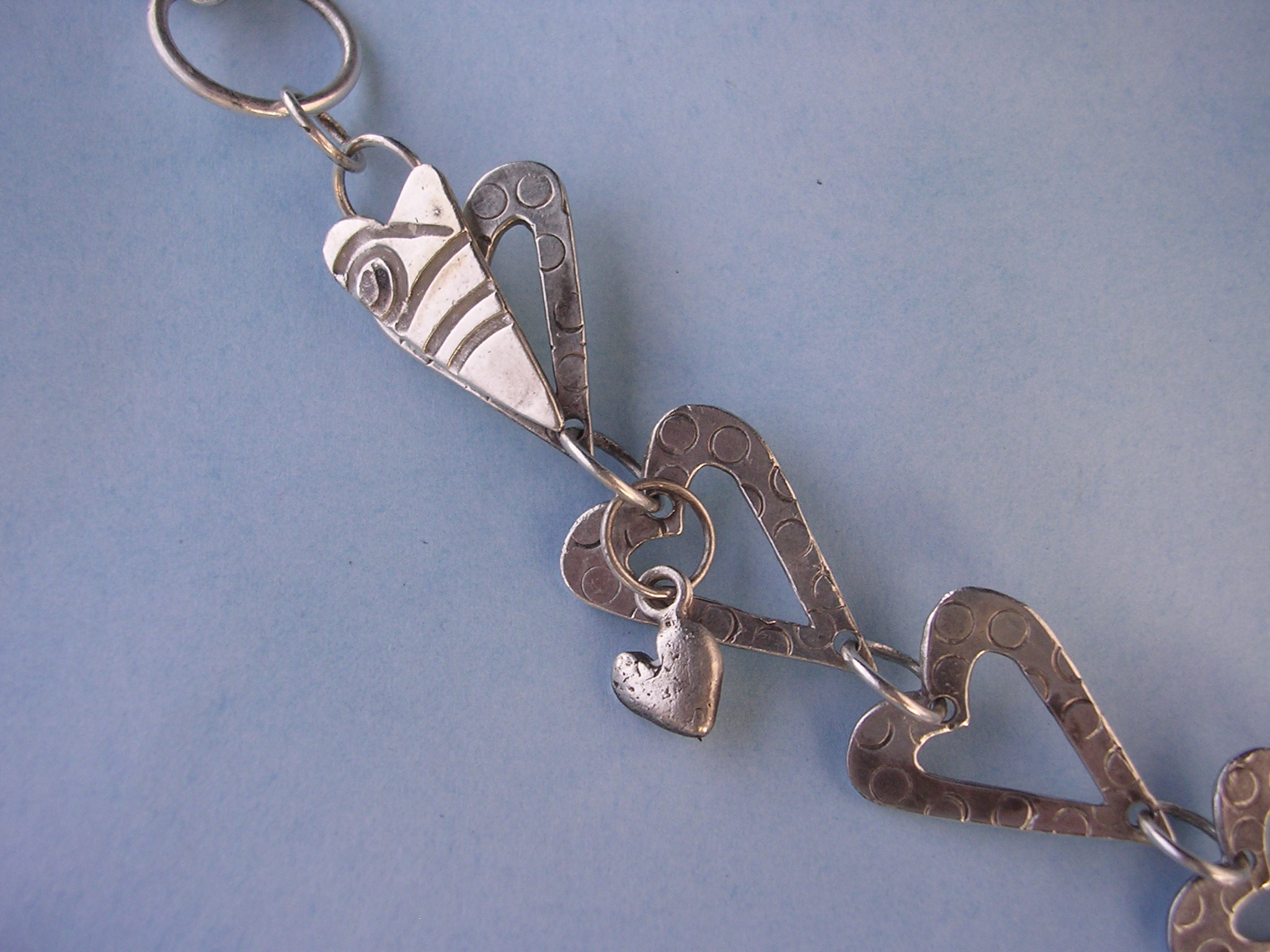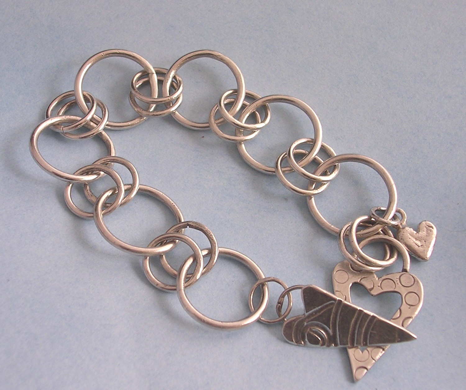 | Chunky sterling silver chain link bracelet with heart toggle closure and droplet heart charm. $105 |